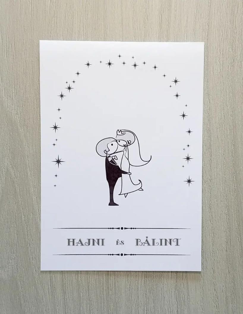 Meghívó ölelkező párral bohókásabb stílusban. Felfelé nyitható.