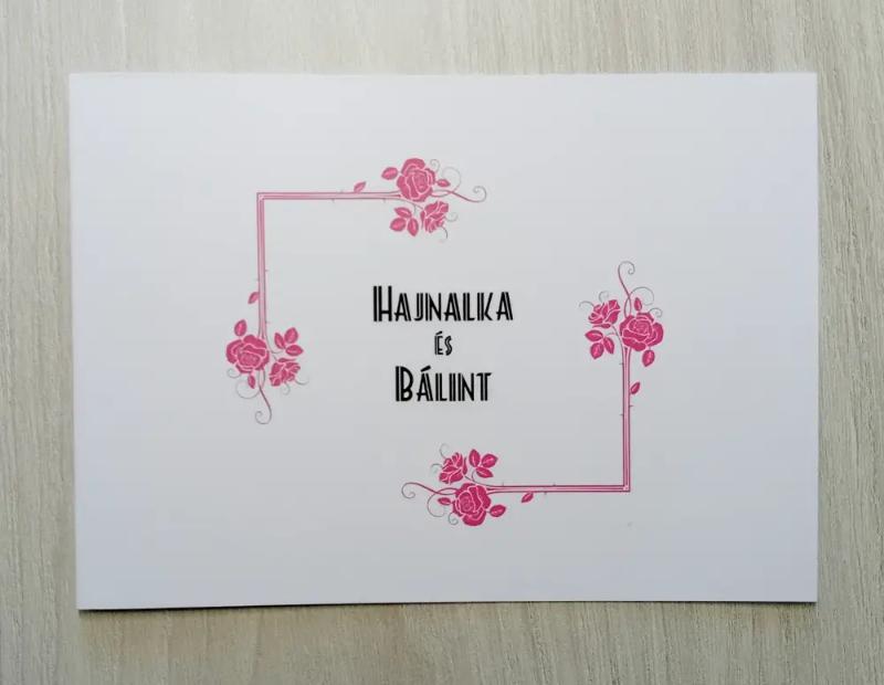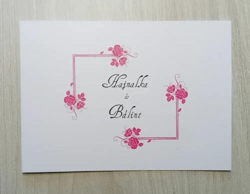 Szolid kis meghívó rózsákkal. Oldalra nyitható.