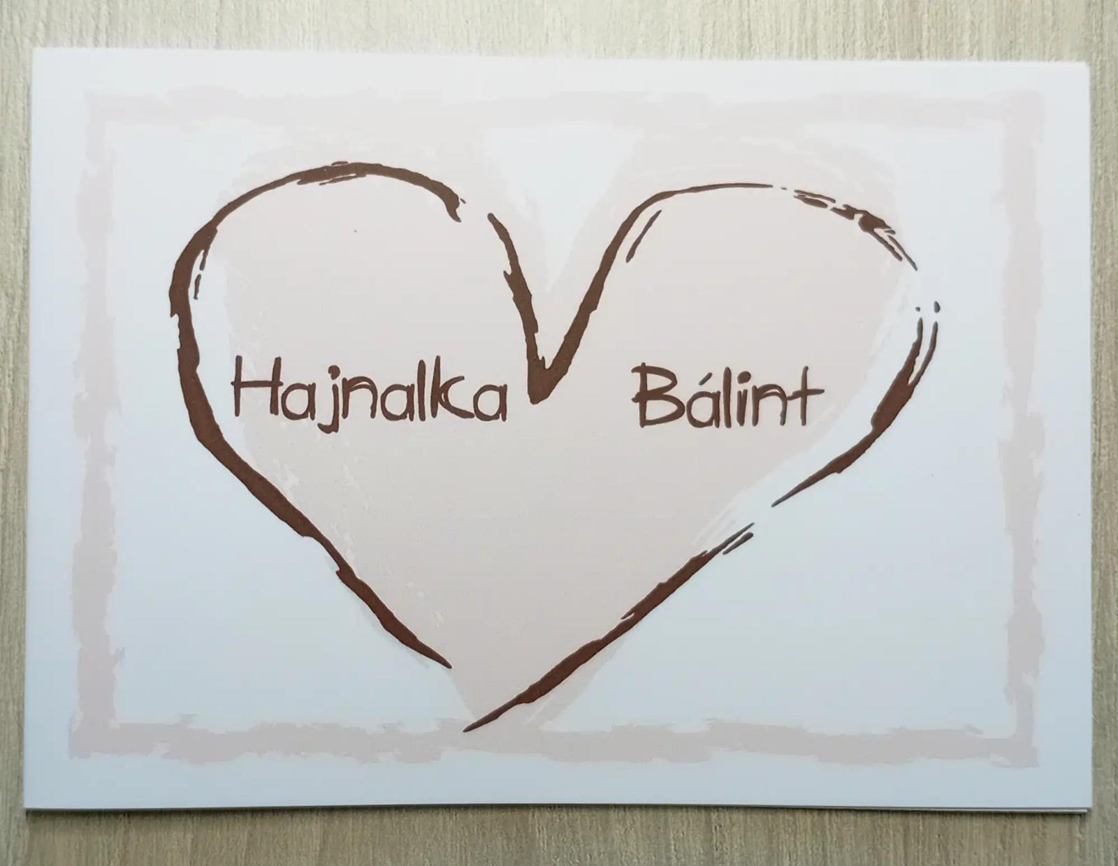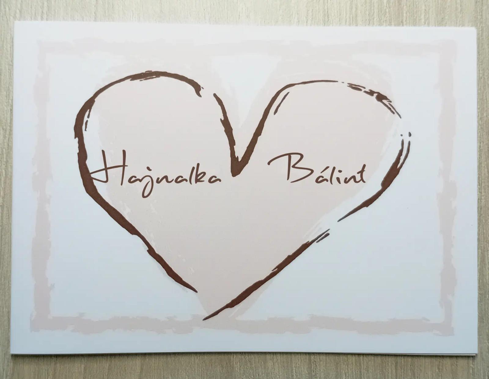Meghívó modern értelmezésű szívmotívummal. Oldalra nyitható.