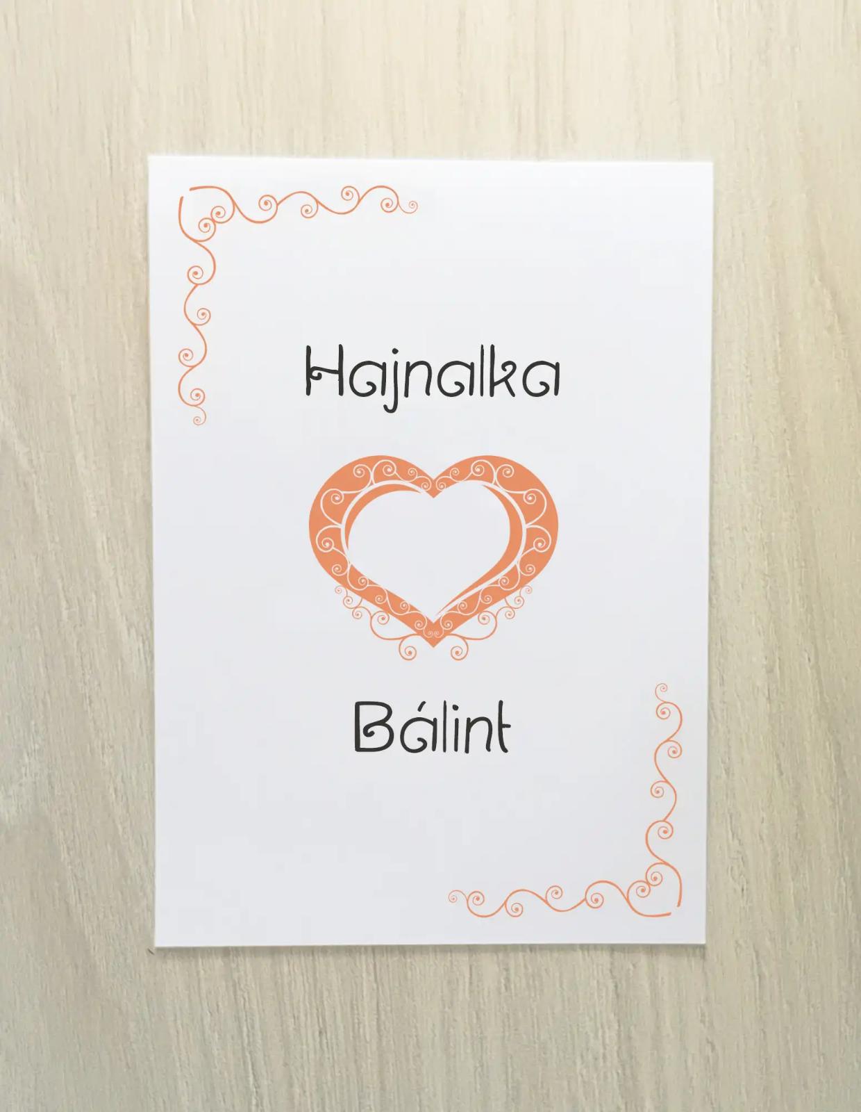 Meghívó finom csigavonalakkal. Felfelé nyitható.