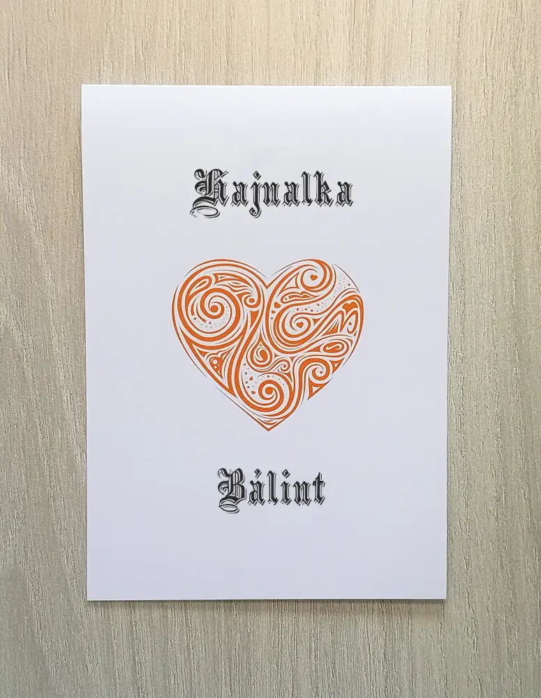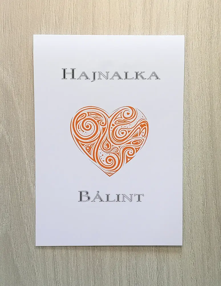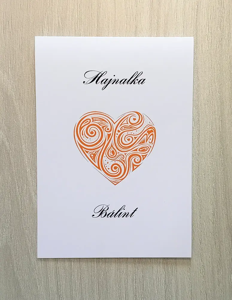 Meghívó szívvel és az érzelmeket szimbolizáló kavargó örvényekkel. Felfelé nyitható.